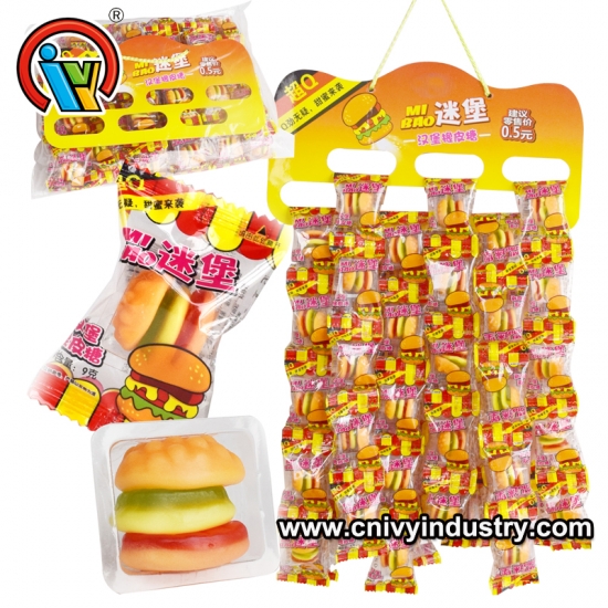 nhà máy trực tiếp hương vị tốt bánh hamburger kẹo dẻo để bán. một phim hoạt hình có 10 túi, một túi có 60 miếng.