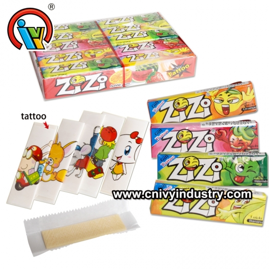 hương vị trái cây phổ biến kẹo cao su có hình xăm. một phim hoạt hình có 30 hộp, một hộp có 20 cái.